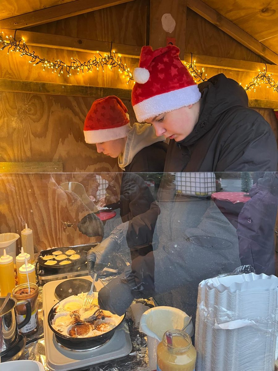 Beim dritten Burger Weihnachtswochenende rund um die Bökelnburghalle waren auch viele Schülerinnen und Schüler aktiv. Die zehnten Klassen verkauften, unterstützt von der Elternschaft, an beiden Tagen selbst gemachte Pförtchen und besserten sich damit ihre Kasse für die Abschlussfeierlichkeiten am Ende des Schuljahres auf.