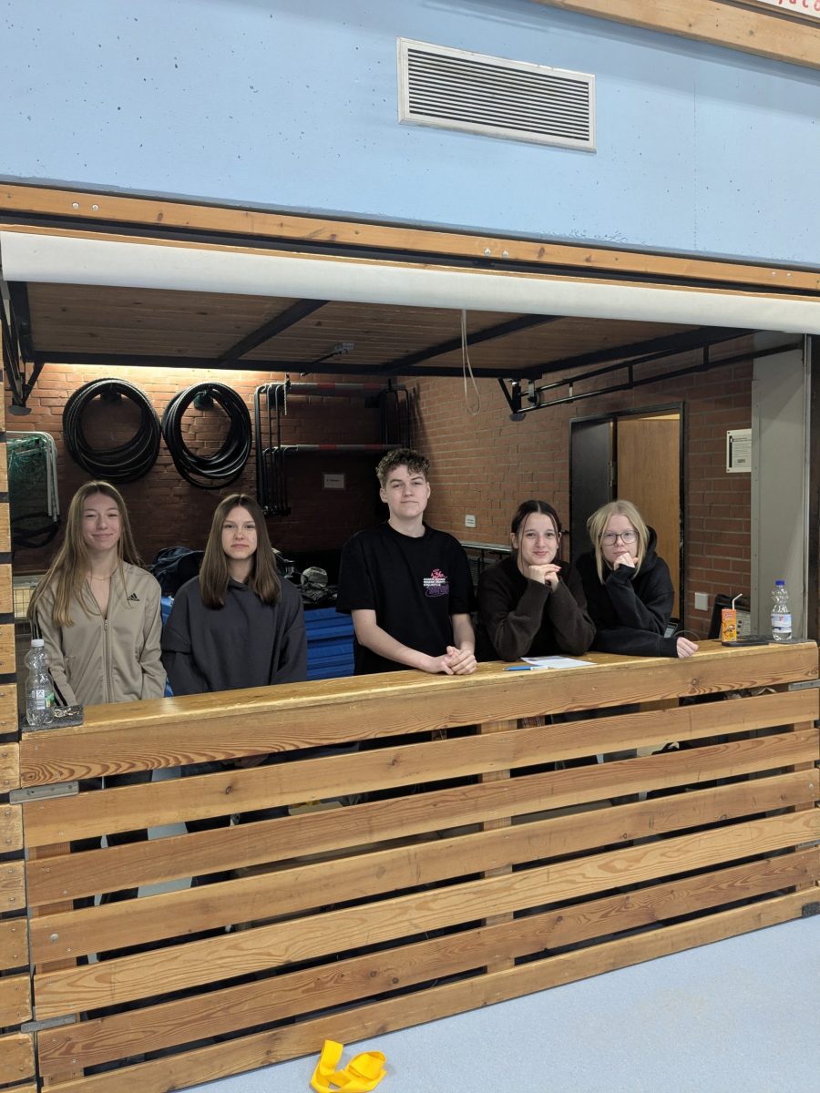 Beim traditionellen schulinternen Fußballturnier der neunten und zehnten Klassen, an dem auch immer eine Lehrermannschaft teilnimmt, gab es in diesem Jahr einige Neuerungen: zum ersten Mal liefen die Lehrkräfte mit eigener Hymne auf. Außerdem sorgte DJ Brinkmann für musikalische Unterstützung.