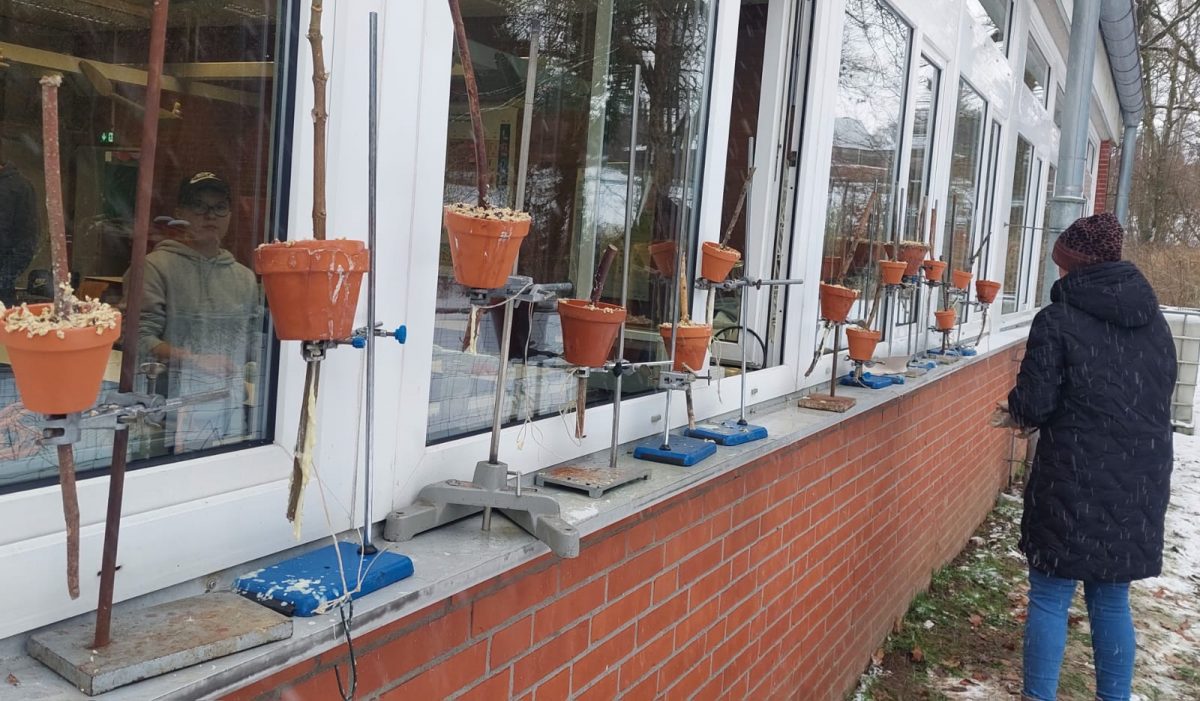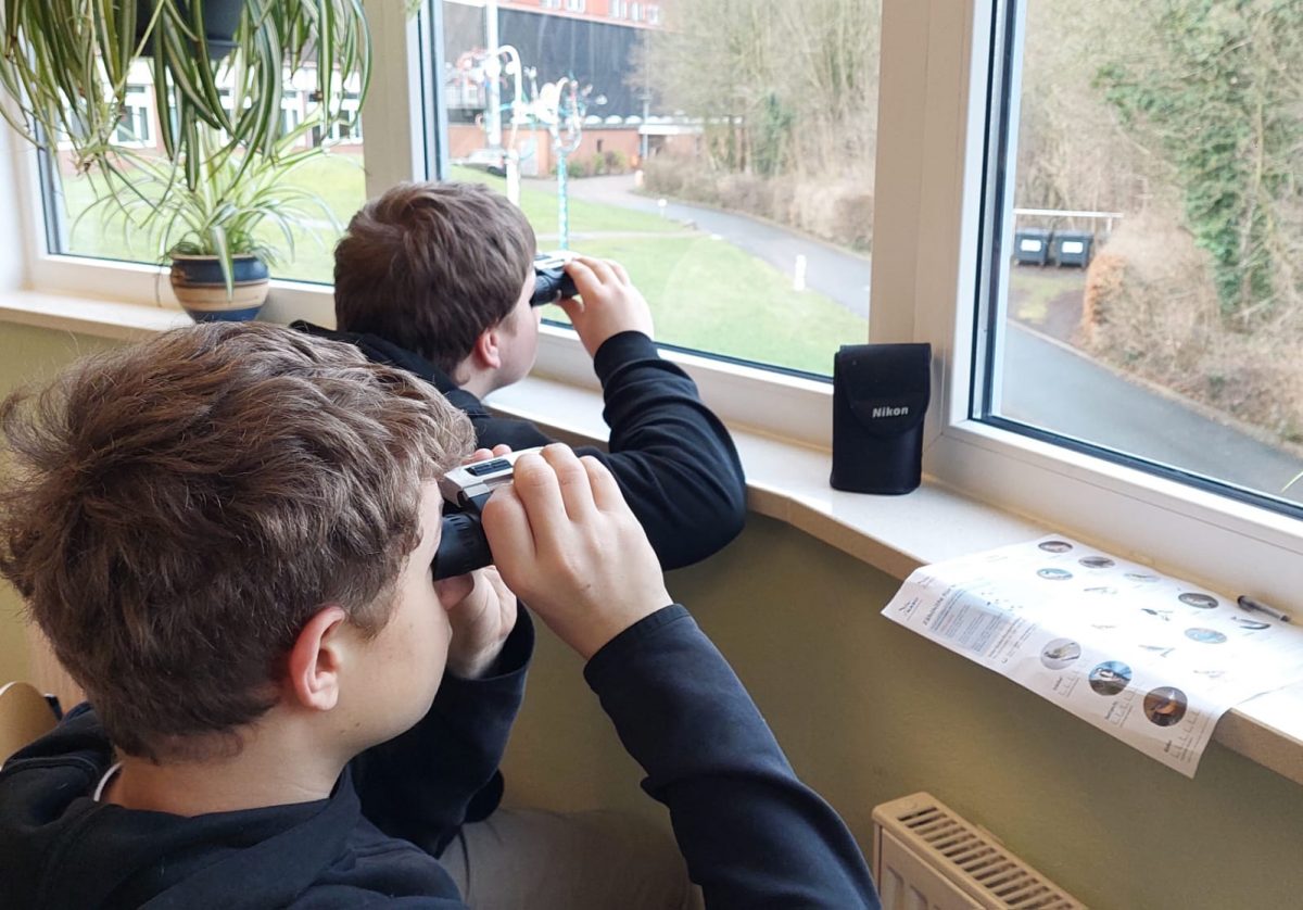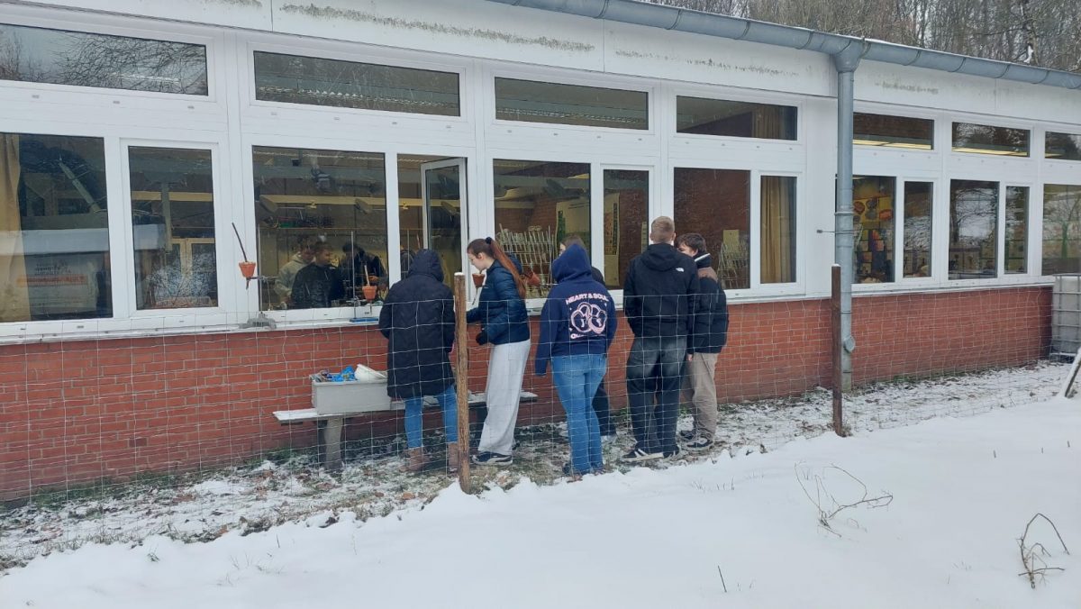 Der WPU Wald 9/10 nahm letzte Woche an der größten öffentlichen Vogelzählung Deutschlands teil, die jährlich vom NABU veranstaltet wird. Mit Ferngläsern und Zählkarten ausgestattet, beobachteten die Schüler und Schülerinnen an verschiedenen Stellen des Schulgeländes für eine Stunde die Vogelwelt. Seit letzter Woche ist der Futterbedarf bei den Vögeln sehr groß. Der WPU Wald befüllten die Futterglocken bereits zum zweiten Mal.