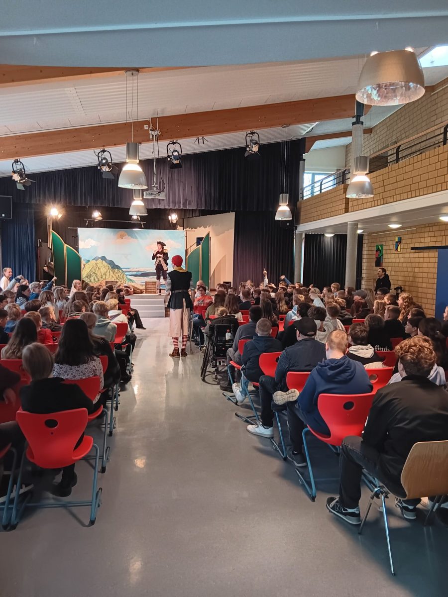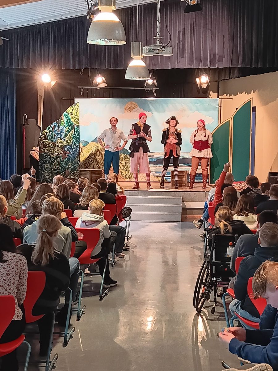 Alle drei Jahre besucht uns das White Horse Theatre für die fünften, sechsten und siebten Klassen. Das White Horse Theatre ist ein Tourneetheater, das englischsprachige Theaterstücke bevorzugt an deutschen Schulen oder anderen Bildungseinrichtungen spielt und inzwischen die europaweit größte professionelle Theatergruppe dieser Art ist. Den vier Schauspielerinnen und Schauspielern gelang es, unsere Schülerinnen und Schüler mit ihren zumeist witzig-turbulenten Theatereinlagen zu begeistern. In diesem Jahr wurde das Stück „The Tiger of the Seas“ dargeboten und die begeisterten Zuschauer lernten die englische Sprache in der Praxis kennen. Nach der Aufführung stand die Schauspielgruppe noch für Fragen zur Verfügung.